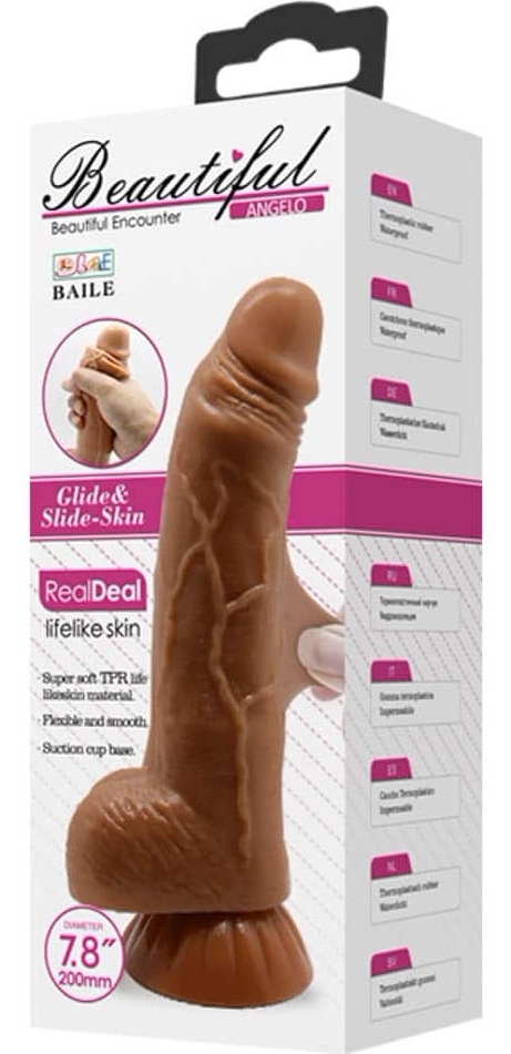 Angelo este un dildo incredibil de realist, meșteșugit dintr-un material cumplit de fin ce imită dermă umană. Aceasta poate fi glisată înainte și înapoi iar capul și testiculele sunt moi, imitând extraordinar de bine organele senzuale masculine.