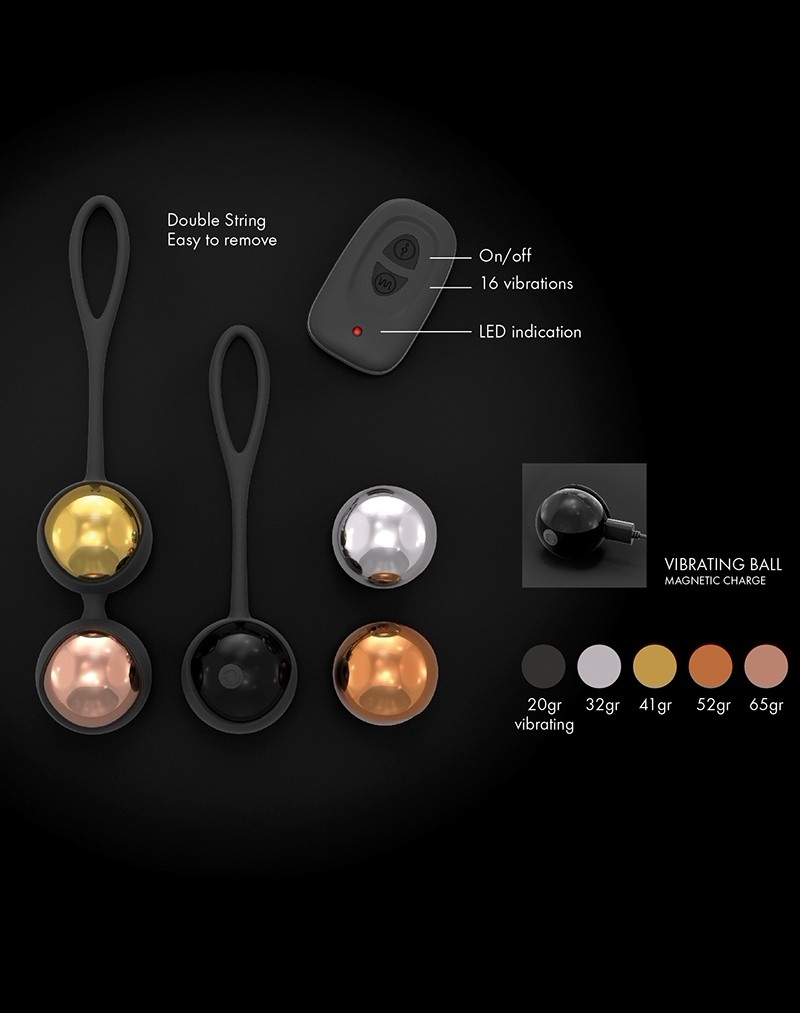 O mulțime de combinații pentru a încerca să-ți întărești podeaua pelvină sau să ameliorezi senzația de act sexual. Fiecare minge are și o minge în centru: fiecare mișcare face ca podeaua pelvină să se contracte. Cu cât ții mai mult timp bilele în tine, cu atât îți strângi mai mult vaginul. Cu cât mușchii tăi sunt mai puternici, cu atât te simți mai bine bărbatul tău în momentul sexului.