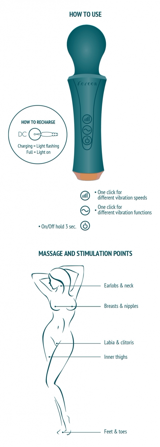 Descoperă Personal Wand Verde de la XOCOON. Wand-ul cu acumulator cu vibrații puternice, însă lipsit de vibrații în mâner pentru confort. Cu 3 viteze, 10 eșantioane de vibrații și cap flexibil. Ușor, eficient, esențial. Însoțit de capete de silicon pentru stimulări precise. XOCOON schimbă intimitatea cuplurilor într-o experiență unică.
