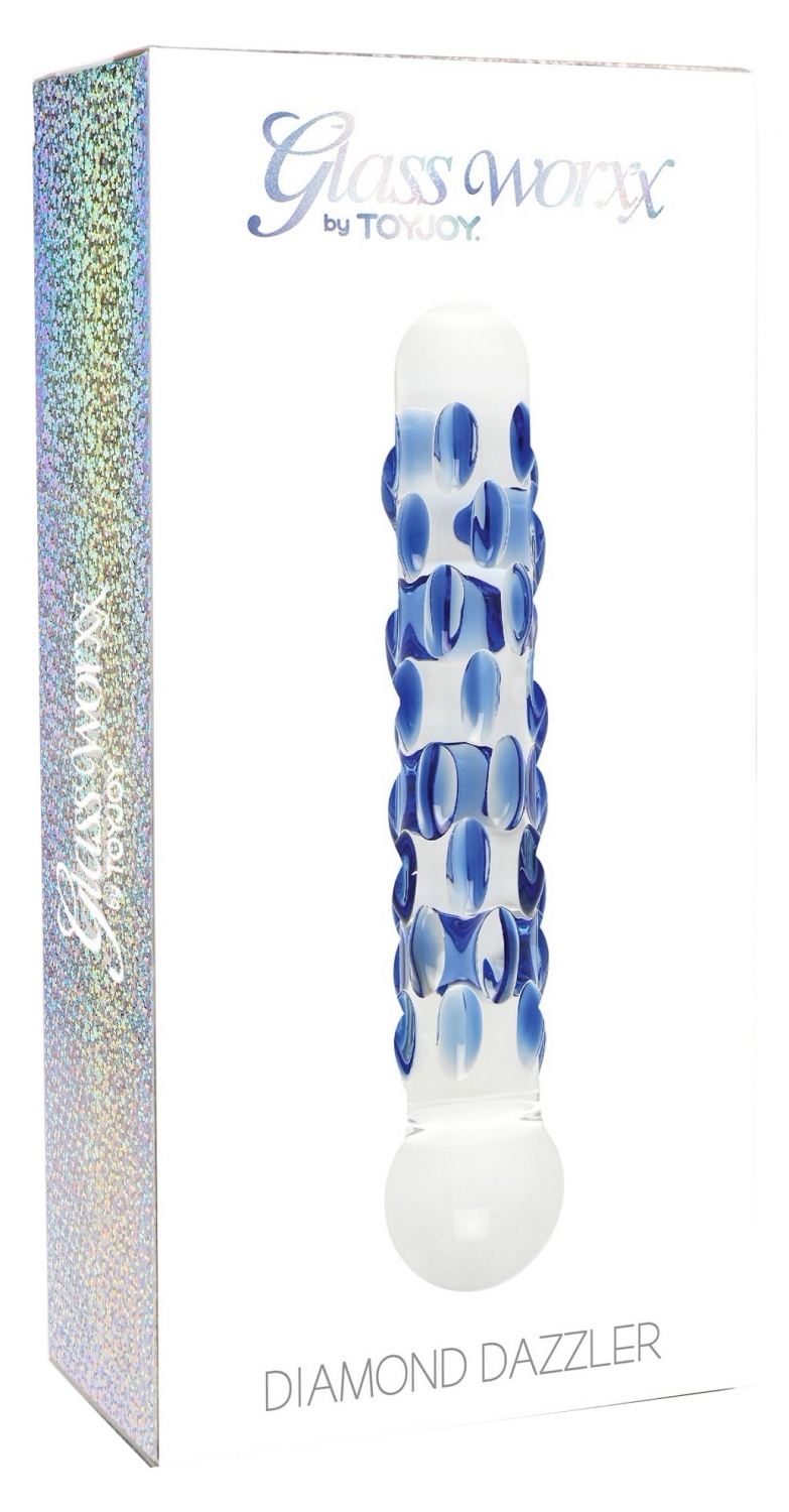 Diamond Dazzler este un dildo unic cu o textură sexy. Siluetă jucăriei are noduri frumoase albastre, care îți tachinează punctele fierbinți cu stârnire uluitoare și suplimentează un element neașteptat de bucurie jocului tău intim.