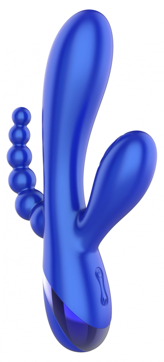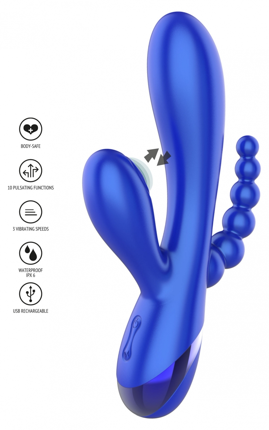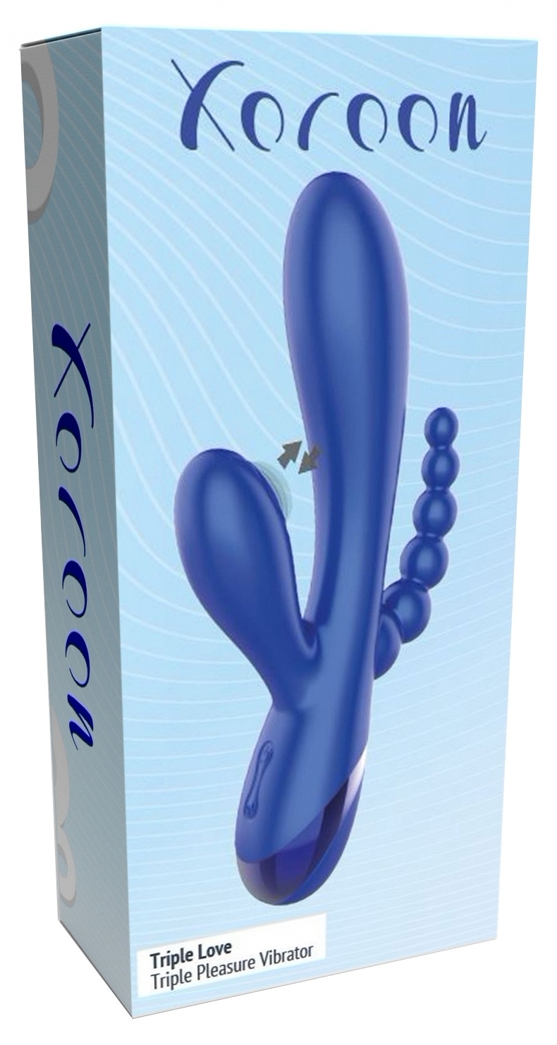 Triple Love Vibrator Albastru oferă aplicații multiple, inclusiv stârnire ritmică prin vibrații și mărgele din silicon fin pentru confort. Designul flexibil și materialele delicate garantează utilizare versatilă, fiind conceput pentru a oferi senzații intense și plăcute, adaptate diverselor preferințe.