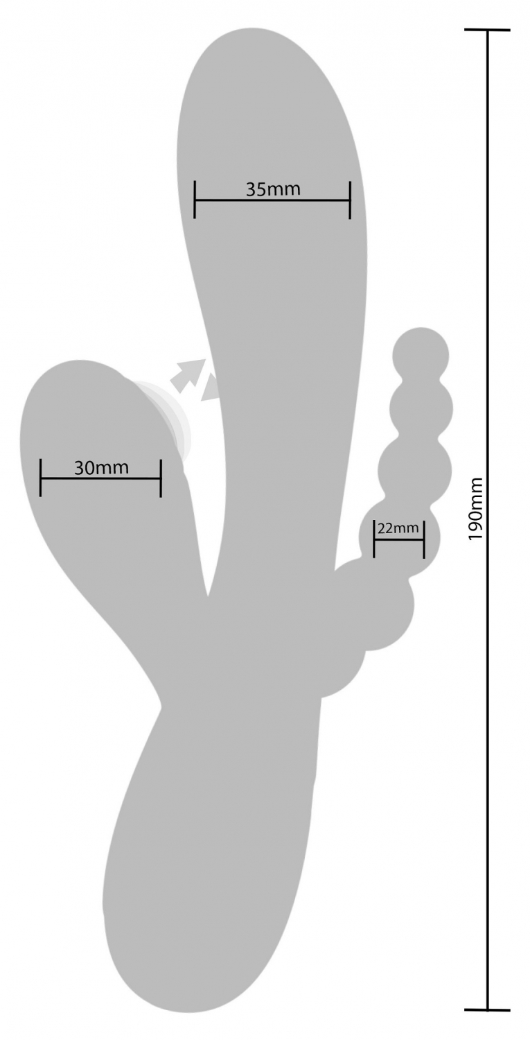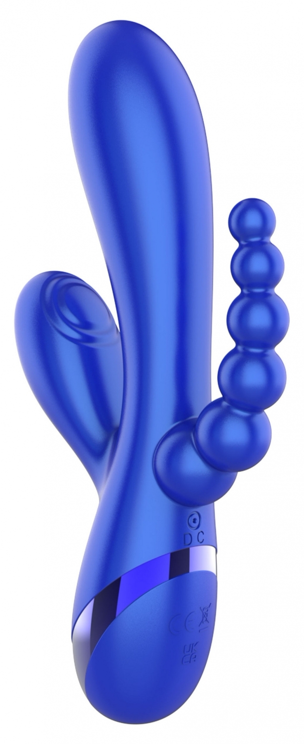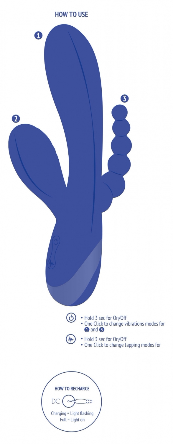 Triple Love Vibrator Albastru oferă aplicații multiple, inclusiv stârnire ritmică prin vibrații și mărgele din silicon fin pentru confort. Designul flexibil și materialele delicate garantează utilizare versatilă, fiind conceput pentru a oferi senzații intense și plăcute, adaptate diverselor preferințe.