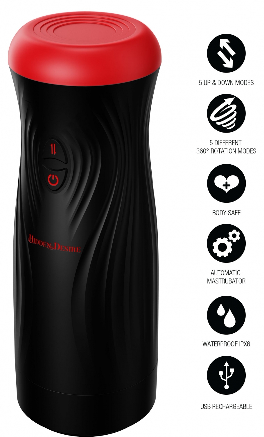 FUSION X - O Călătorie în Lumea Satisfacerii Avansate Descoperiți FUSION X de la HIDDEN DESIRE, o colecție premium care redefinește limitele explorării senzoriale. Vortex Masturbator este o capodoperă inginerească, concepută pentru a dărui senzații nemaivăzute. Cu un motor rotativ sofisticat, acest aparat inovator îmbină cinci maniere de rotație cu cinci moduri verticale, creând o simbioză desăvârșită între mișcare și stimulare.