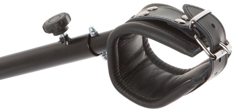 Bară de restricție ZADO, creată pentru conservarea unei poziții fixe. Dotată cu manșete din piele moale, atașate ferm de o bară metalică robustă. Lungimea barei este ajustabilă între 65 cm și 120 cm, iar manșetele se reglează cu susținerea cataramelor. Produsul conține o geantă de depozitare. Materiale: piele, epidermă splitată, metal.