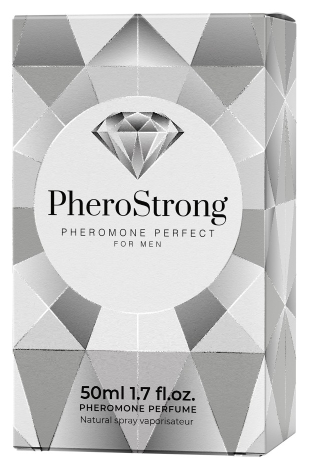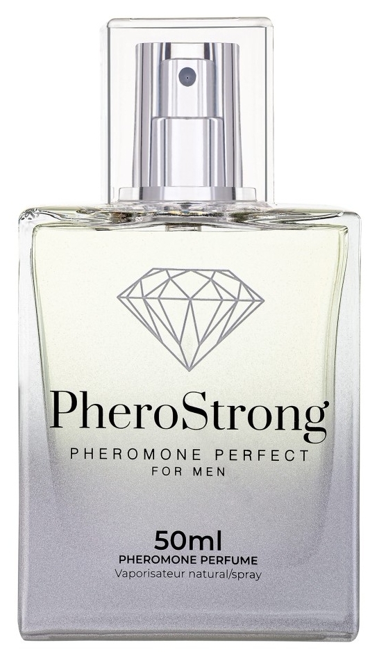 PheroStrong – parfum masculin cu feromoni, 50 ml. Note de vârf: cardamom, piper roz, frunze de violet; inimă de salvie, vanilie și castan; bază de mosc. Prezență discretă, persistentă și sigură, adecvată pentru zi și seară.