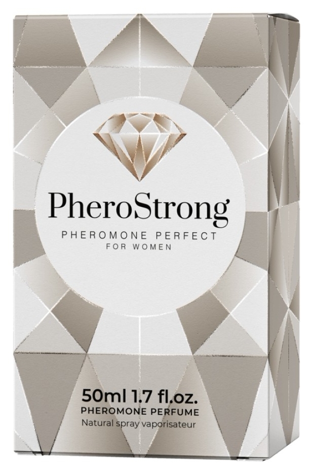Parfum cu hormoni de atracție PheroStrong Perfect for Women, 50 ml. Note de vârf lychee, inimă de trandafir și bujor, bază cu ambracris. Flacon compact, discret și ușor de purtat; pulverizare pe punctele de puls pentru un aer seducător și sigur.
