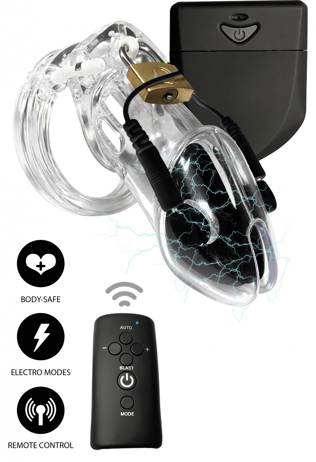 Cușcă Penis Electrică Discretă cu Telecomandă Transparent