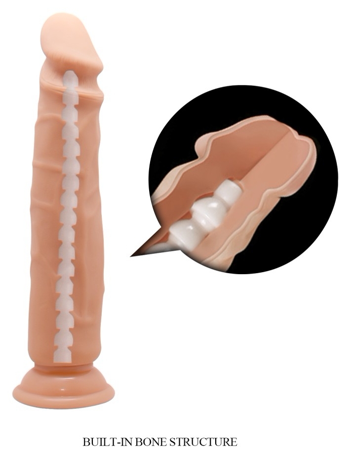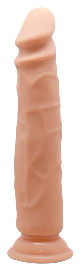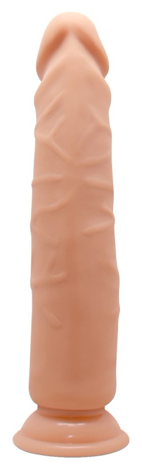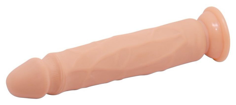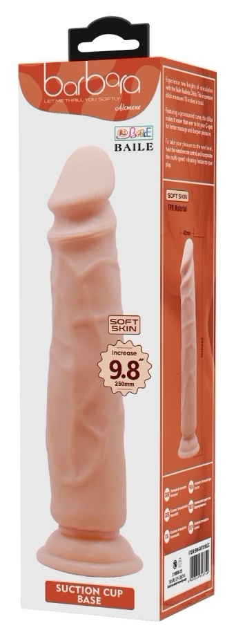 Penis artificial Baile de 23,5 cm, cu formă realistă, cap pronunțat și textură cu vene. Cupă de aspirație intensă pentru stabilire pe suprafețe plane. Fără vibrații, flexibil, ușor de curățat. Recomandat cu lubrifiant pe bază de apă.