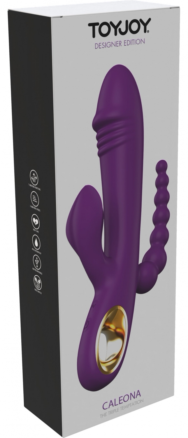 Caleona de la ToyJoy este un vibrator cu design triplu, plămădit pentru stimulare simultană anală, clitoridiană și internă. Face parte din colecția Designer Edition și combină automatizare discretă cu o formă flexibilă, pentru confort și plasare facilă.