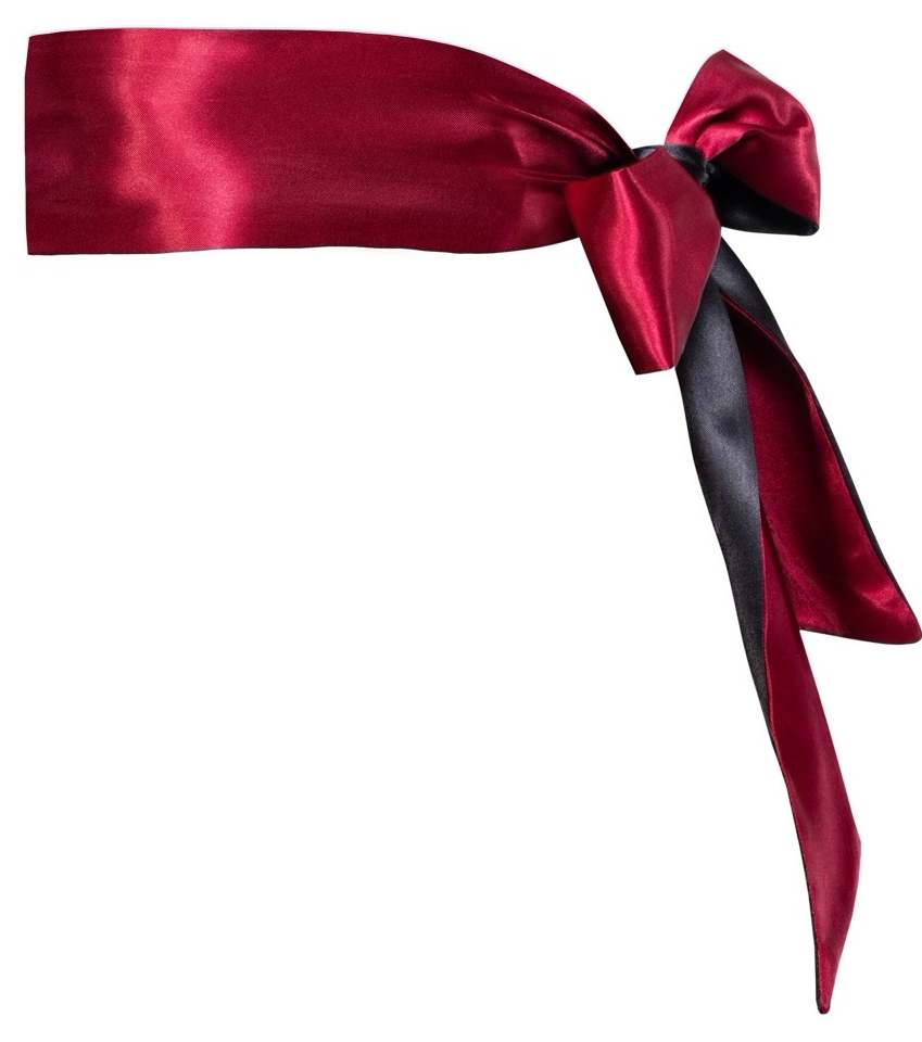 Eșarfă Bondage din satin, reversibilă roșu închis/negru, 150 x 6 cm. Textură catifelată, strălucire discret, perfectă ca mască sau pentru restricții moi. Material 100% poliester, facil de întreținut și sigur de folosit.