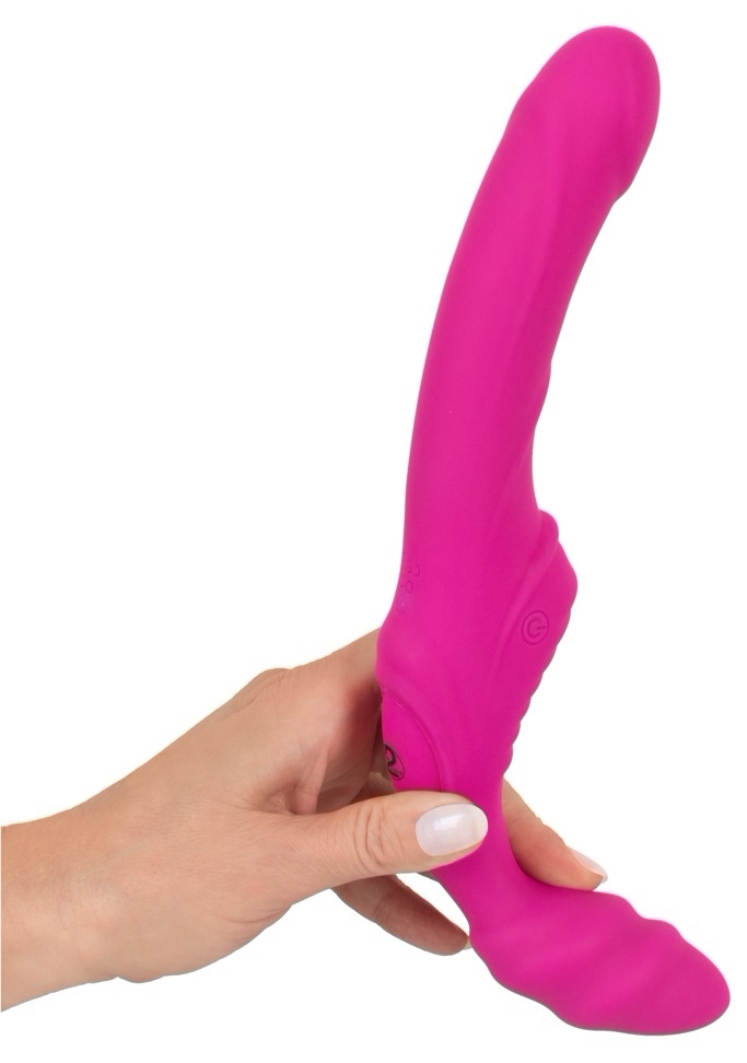 Un strapless strap on cu două vibratoare flexibile, conceput pentru plăcere partajată sau utilizare individuală. Partea scurtă se introduce în partea interioară şi este menţinută de muşchii pelvieni, iar partea lungă, texturată, oferă stârnire partenerului.