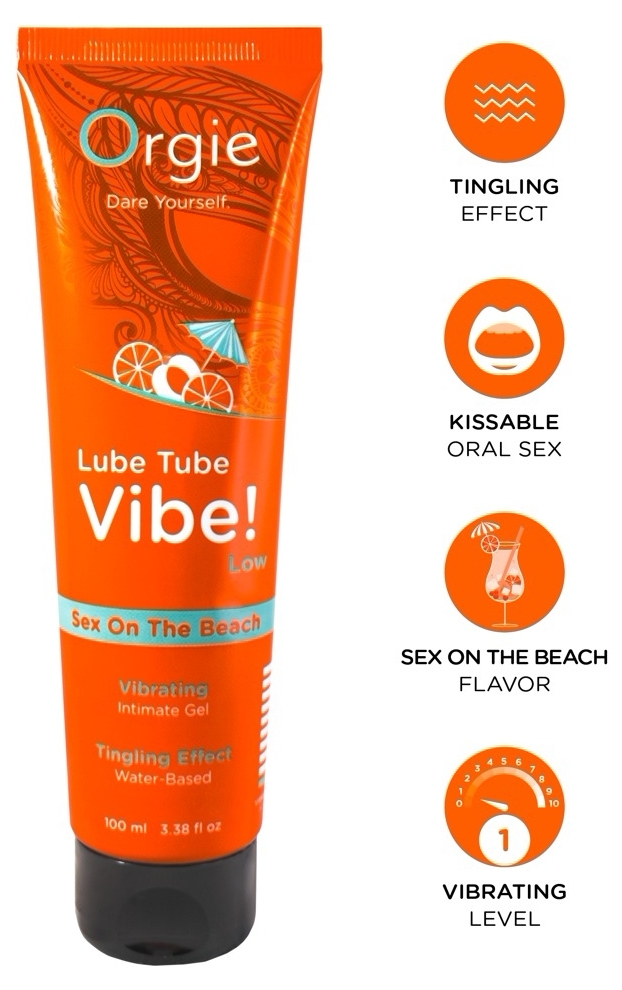 Gel sexual Orgie cu mireasmă Sex on the Beach, pe bază de apă. Textură catifelată, non-adezivă, cu rod ușor vibrator și furnicături (1/10). Volum 100 ml; reaplicabil, corespunzător pentru preludiu și contact bucal.