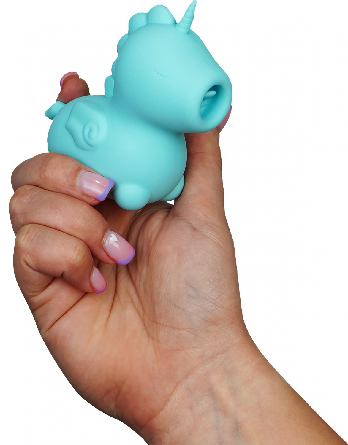 Mini vibrator Unihorn Mount Peak — compact, reîncărcabil USB, din silicon moale. Dual motoare deluxe, 10 feluri de vibrații și 10 modele ale limbii controlabile separat. Rezistent la apă, ușor de purificat și deplin pentru portabilitate.