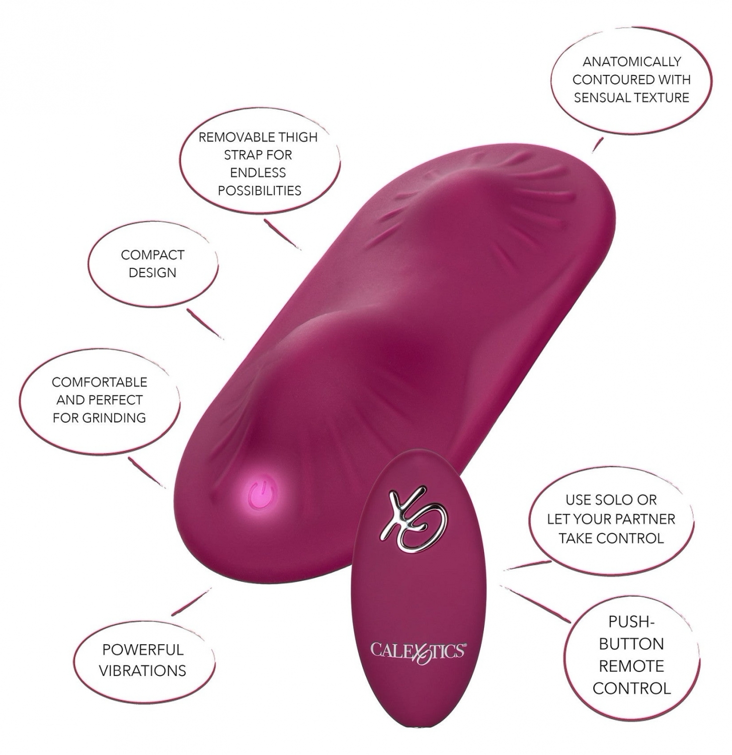 Dual Rider este compact cu tele-comandă și curea ajustabilă pentru coapsă. Oferă numeroase moduri de vibrație, este reîncărcabil și rezistent la apă IPX7. Proiectat pentru confort, manevrare ușoară și utilizare discretă.