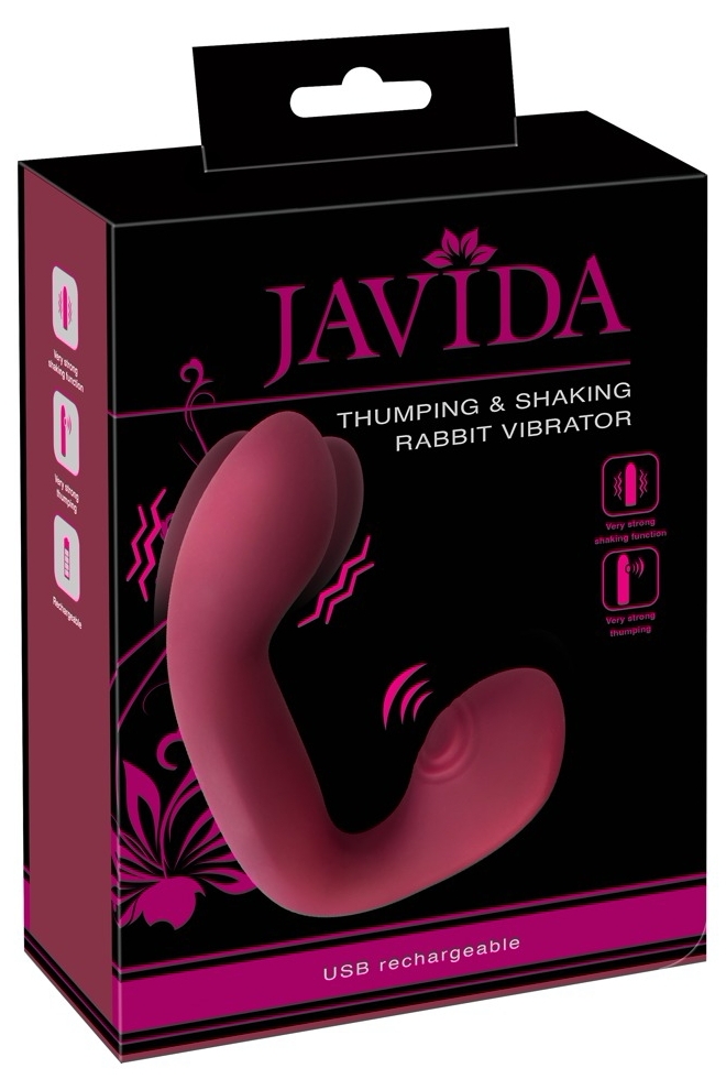 JAVIDA Thumping Shaking Rabbit oferă stârnire profundă printr-o formă curbat conceput pentru punctul G. Componentă superioară a dispozitivului pulsează și se mișcă pentru un frecție interior plăcut, în timp ce capul pentru clitoris transmite impulsuri de ciocănit.