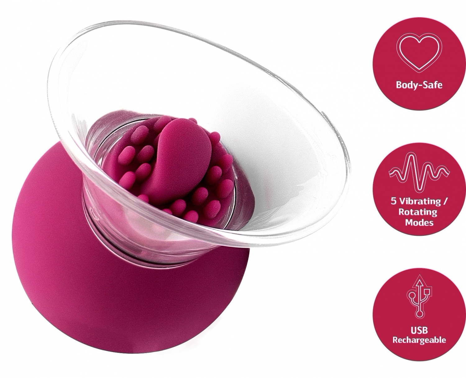 Funcţionalitate clară şi controlată: suflă bulb pentru a crea aspiraţie, apoi alege dintre cele 5 feluri pentru rotaţie și cei 5 paşi de vibraţie. Este reîncărcabilă prin USB C pentru utilizare fără fire şi este fabricată din substanțe sigure pentru corp.