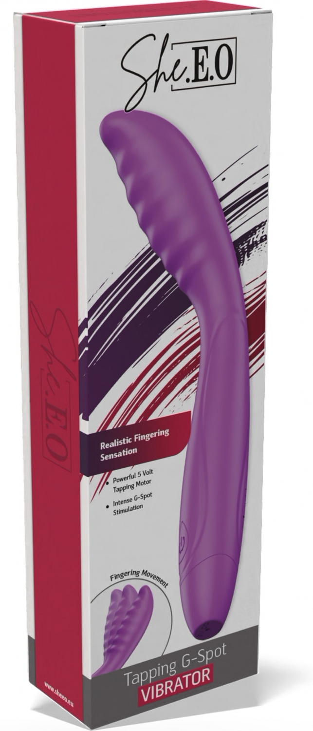 Vibrator She EO cu cap percutant pentru stimulare a punctului G și tija vibratoare. 10 chipuri combinate de vibrație și tapping, silicon sigur pentru corp, reîncărcabil și robust IPX7. Extindere inserabilă 16 cm, diametru 2.5 cm.