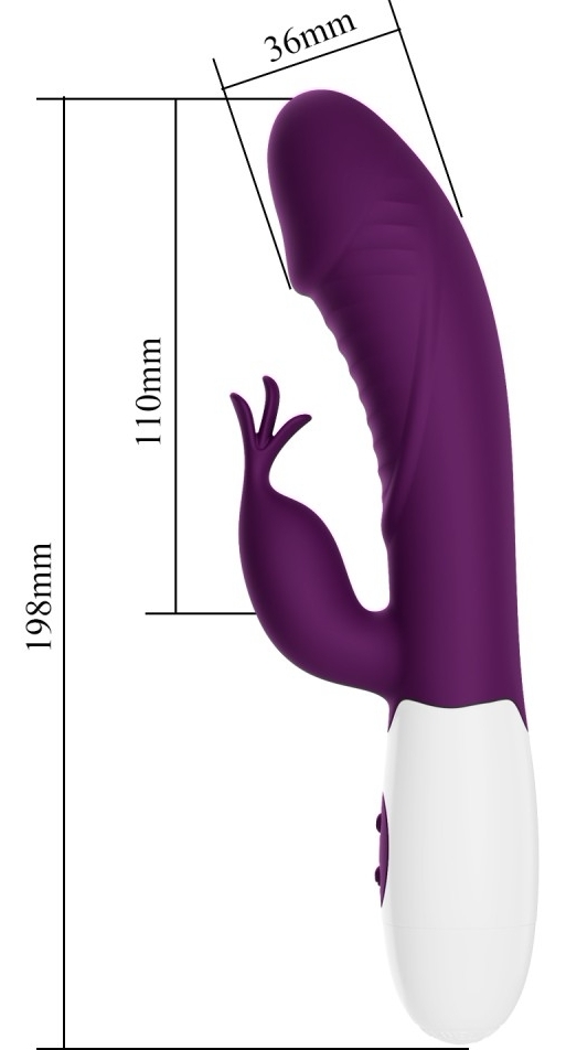 Pretty Love Rasmussen Violet este un stimulator dublu realizat pentru surescitarea punctului G și a clitorisului simultan. Forma sa unică și partea flexibilă garantează atingere constant cu clitorisul, în timp ce brațul îndoit acționează asupra punctului G. Dispune de 30 de maniere de vibrație care încuviințează reglaje fine ale intensității.