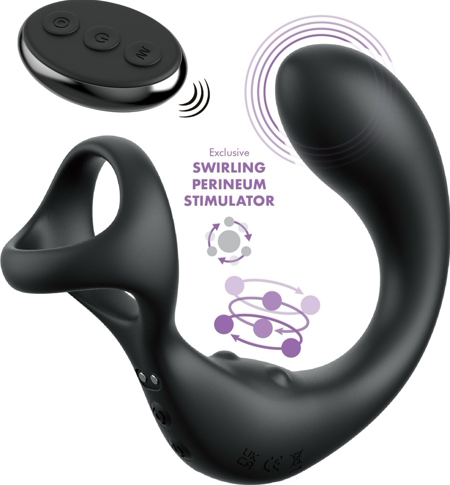 Discret și ergonomic, Taint Alizer leagă un plug vibrator pentru prostată, un stimulator circular pentru perineu și un inel elastic de susținere. Două motoare independente, 3 viteze și 7 moduri, telecomandă, reîncărcabil și tenace la apă.
