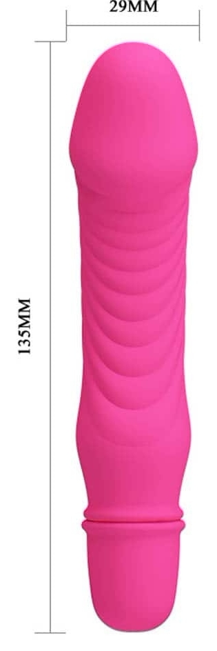 Mini vibrator Pretty Love Stev Pink din silicon, cu cap orientat pentru stârnire precisă a punctului G. 10 funcții de vibrație, rezistent la apă și reîncărcabil. Design ergonomic, ușor de curățat. Propus lubrifianți pe bază de apă.