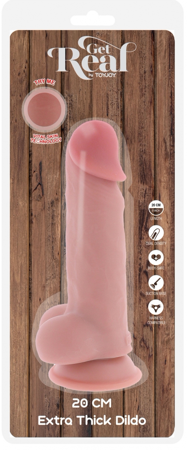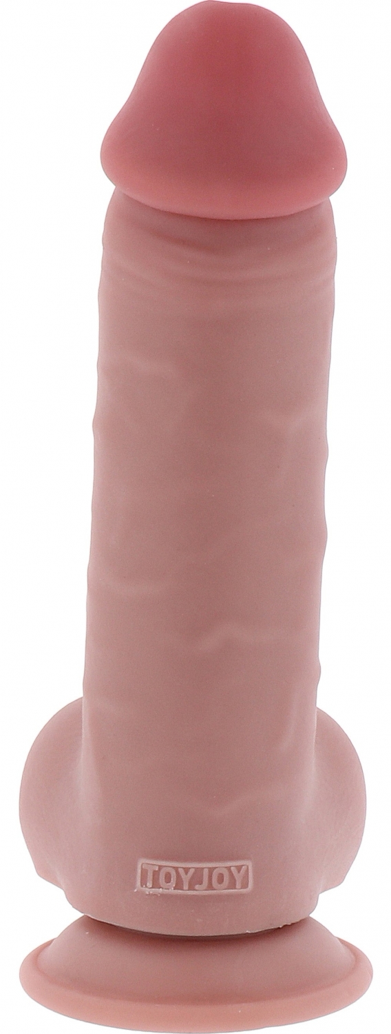 Dildo ToyJoy Deluxe, 20 cm, din TPE cu textură realistă. Construcţie dual density: nucleu ferm și exterior jelly pentru senzație naturală. Bază cu ventuză pentru fixare hands-free.