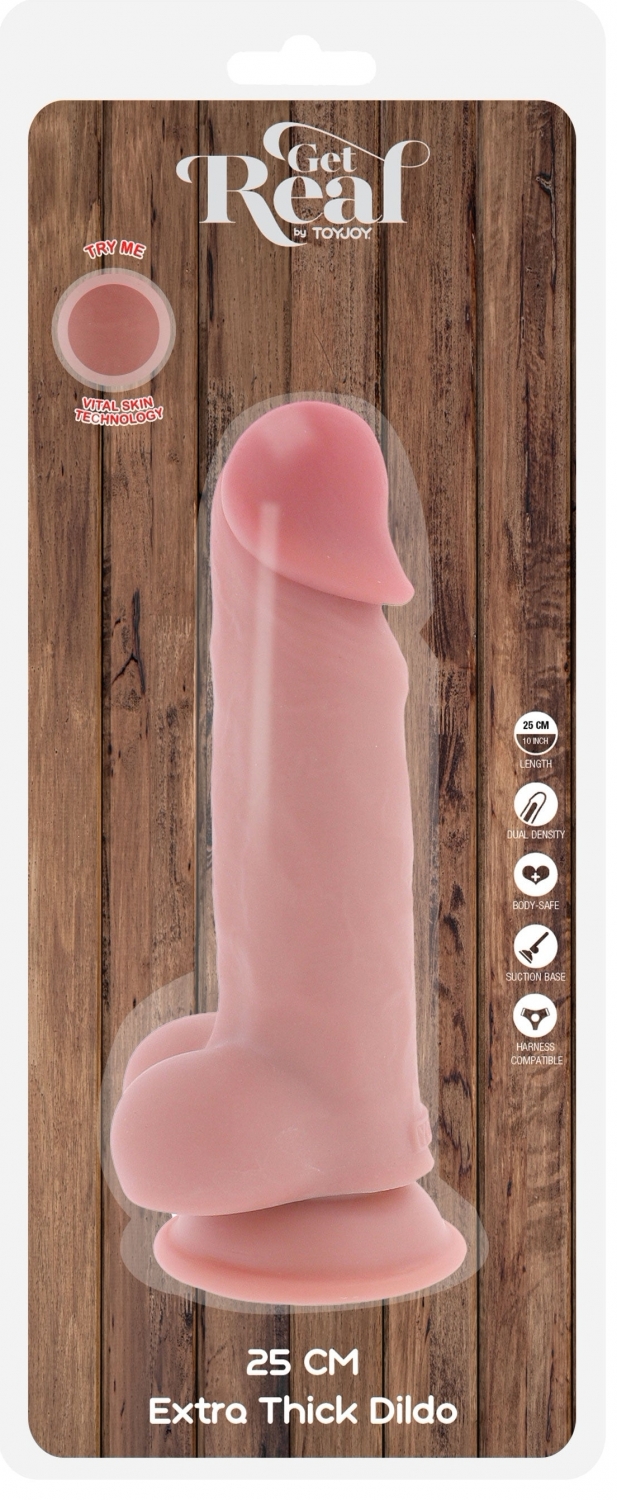 Dildo realist ToyJoy, 25 cm, dual densitate: nucleu ferm și înveliș exterior neted pentru confort și stabilitate. Bază cu ventuză pentru utilizare hands-free, textură detaliată, întreținere ușoară și stil discret.