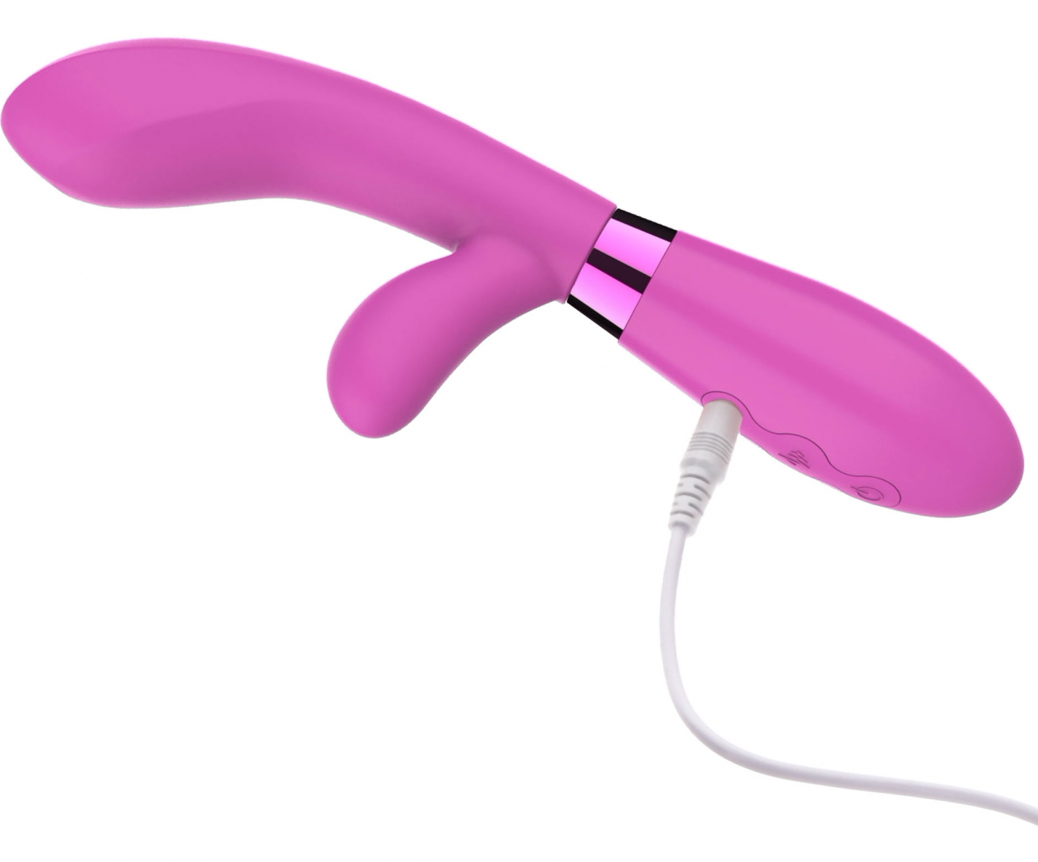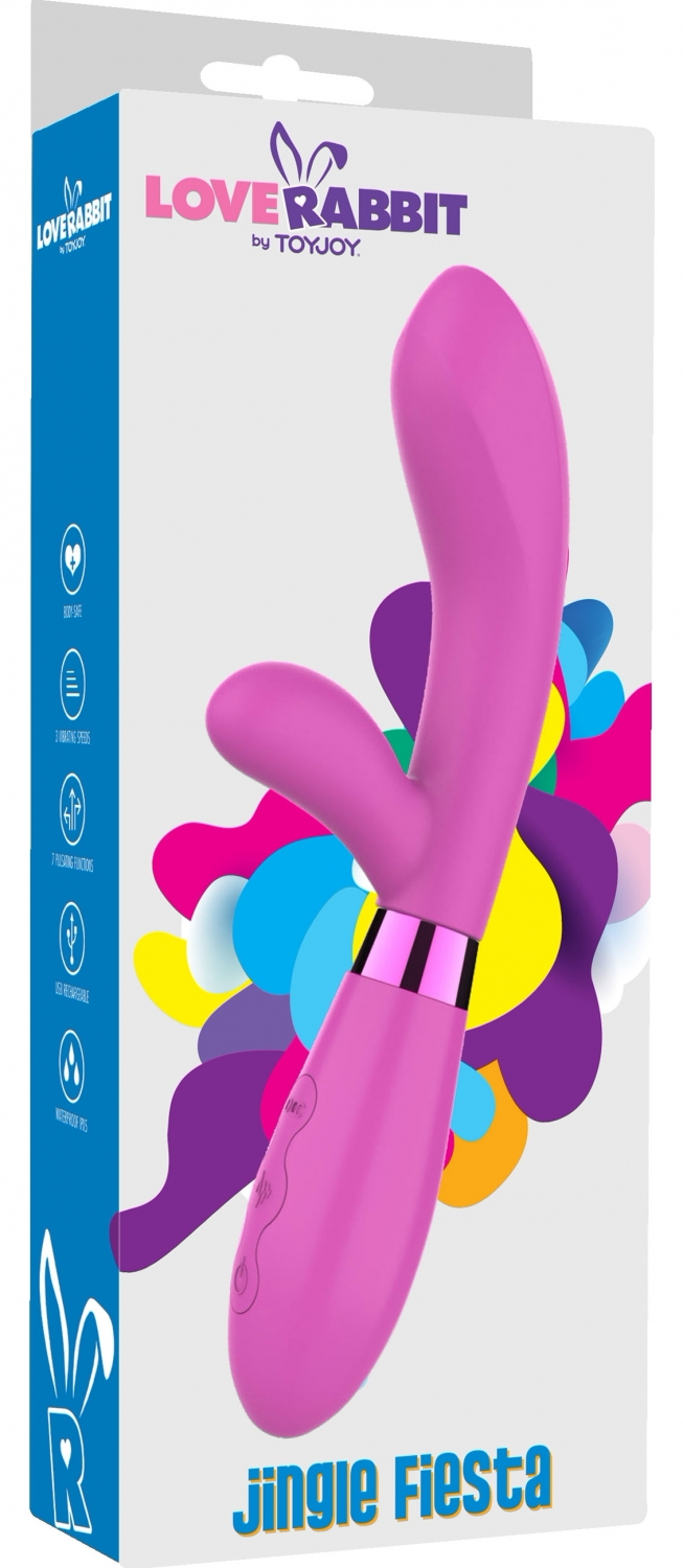 Jingle Fiesta de la TOYJOY (Love Rabbit): vibrator din silicon, cu acumulator USB, 20 cm, 8.5 cm inserabili, calibru 3.5 cm. 10 maniere (7 pulsații + 3 viteze), IPX5, acumulator Li‑Ion inclus și control la distanță.