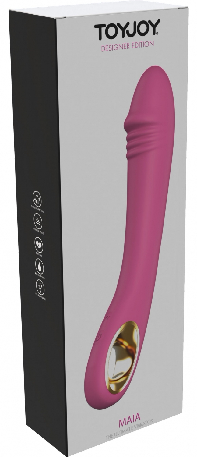Maia de la ToyJoy, parte din Designer Edition, este un vibrator Punct G cu formă curbată, proiectat pentru contact direct și confort. Suprafața netedă din silicon și ABS alunecă plăcut, iar designul compact îl păstrează discret.