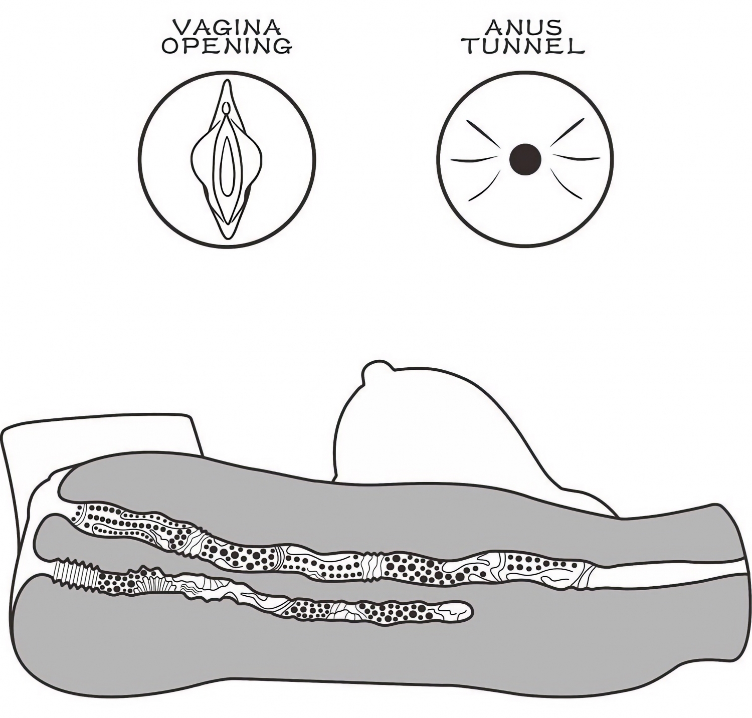 Dispune de două pasaje interioare distincte, fiecare cu texturi studiate (nodule și curbe) pentru o stârnire progresivă. Canalul mai strâns acordă senzație mai intensă, iar elasticitatea materialului se adaptează după câteva utilizări, facilitând introducerea și manevrarea.