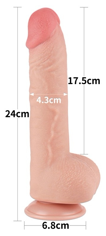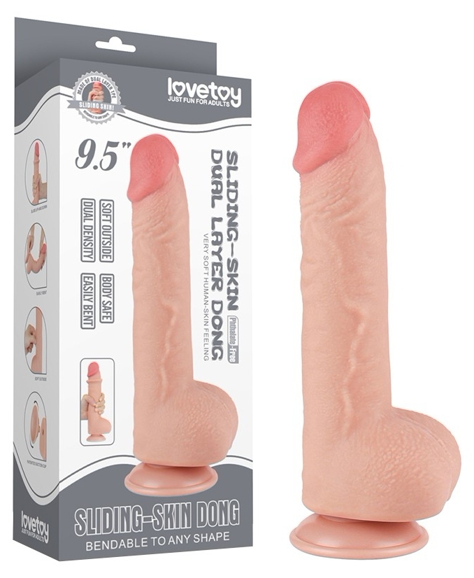 Dildo realist LoveToy din TPE sliding-skin cu artă de a fabrica dual density: exterior moale, nucleu ferm. Lungime totală 24 cm, diametru ≈4.3 cm, ventuză detașabilă cu prindere puternică. Flexibil, fără vibrații. Recomandat lubrifiant pe bază de apă și curățare cu săpun neutru.