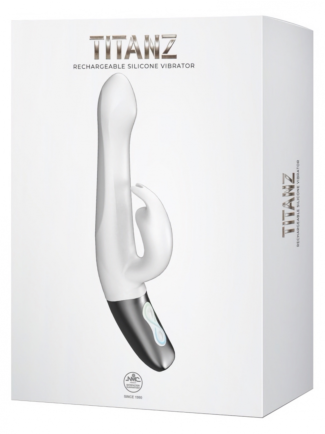 Vibrator Titanz din silicon, reîncărcabil, cu cap texturat, 10 funcții de vibrație și 10 de rotație, plus stârnire de clitoris (10 moduri). Mâner metalic, buton iluminat în întuneric, zdravăn la apă. Recomandat cu agent lubrifiere pe bază de apă.