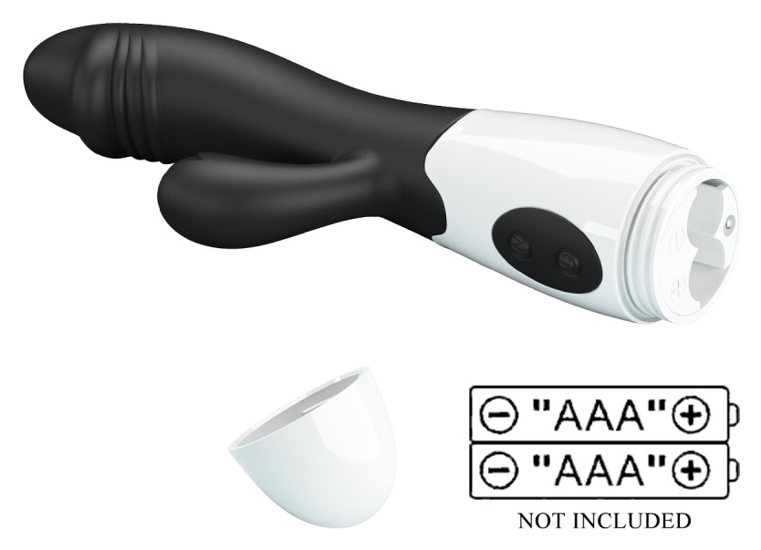 Vibrator bunny Pretty Love Snappy Black: braț maleabil pentru atingere constant cu punctul G și clitorisul. 30 feluri de vibrație, controale intuitive și pornire separată a motoarelor. Rezistent la apă. Alimentare: 2 x AAA.