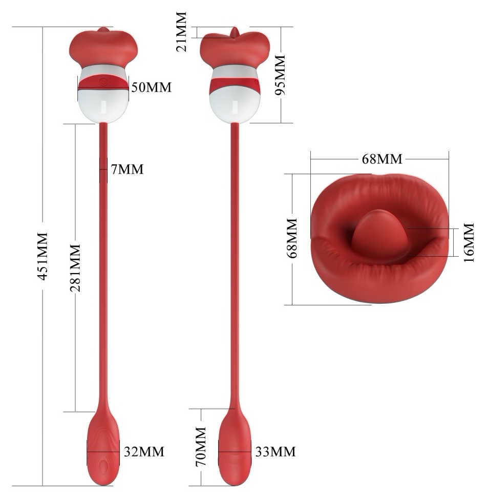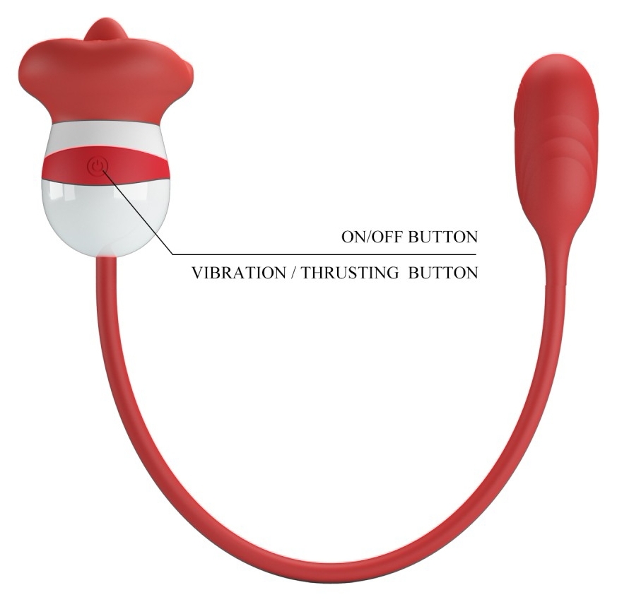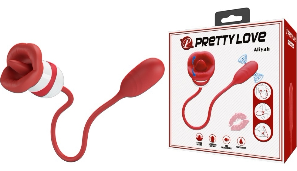 Pretty Love Aliyah îmbină două moduri de stârnire într-un design compact inspirat din mișcarea buzelor. Un capăt imită lingearea delicată, iar celălalt transmite pulsații puternice pentru o senzație complementară și intensă.