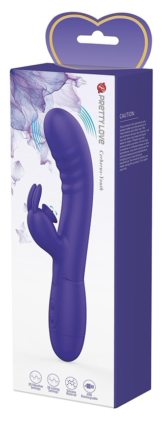 Pretty Love Cerberus Youth este un vibrator tip rabbit, conceput pentru stimulare multiplă și reglaje fine. Capul curbat țintește punctul G, iar brațul mic tip iepure conferă contact direct și precis cu clitorisul. Conține de 30 de programe de vibrație pentru a adapta intensitatea după preferințe.