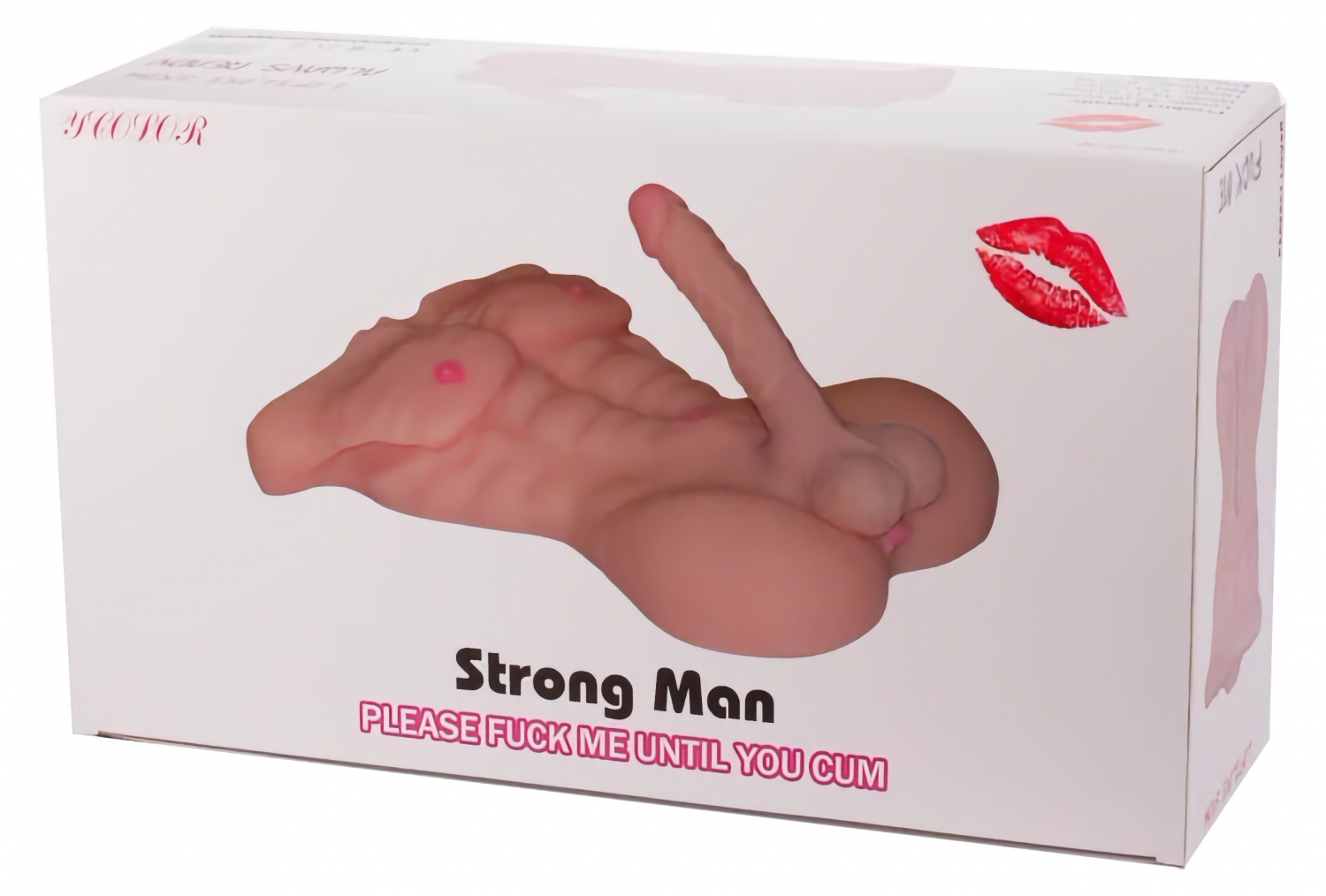 Strong Man este un torso-masturbator creat cu atenție la detalii, concretizat din TPR moale, similar pielii. Modelul imită trunchiul bărbătesc cu pectorali și abdomen, conține orificii realiste și un dildo inserabil de 17 cm (diametru 4 cm). Baza plată și greutatea de 6,25 kg aduce stabilitate în utilizare. Dimensiuni totale: 51 x 36 cm.