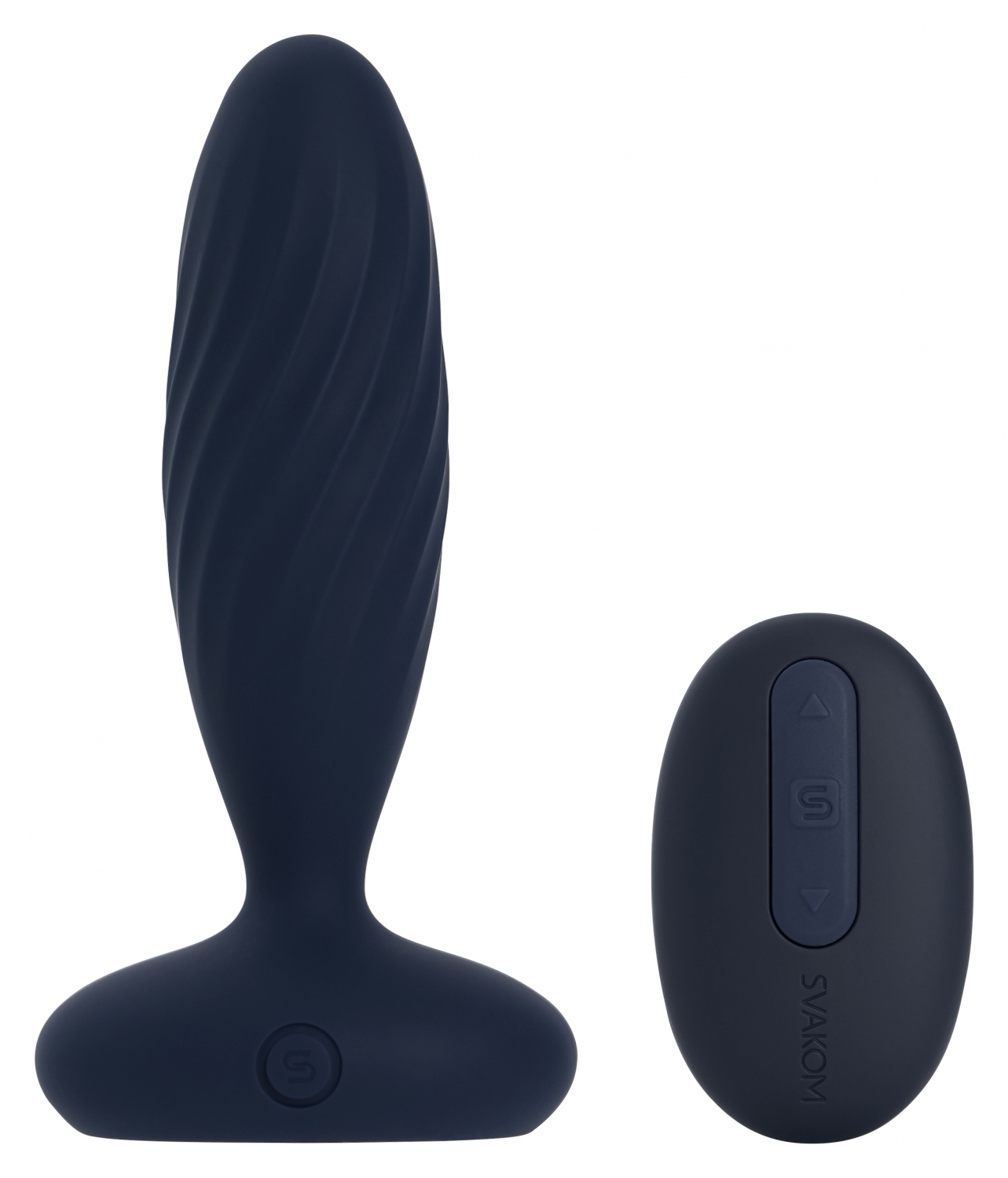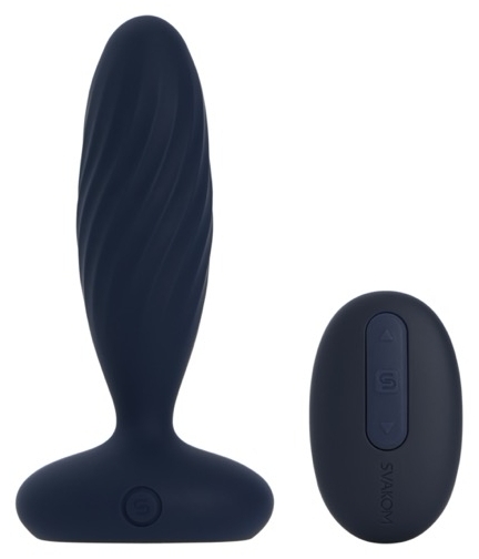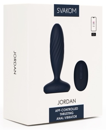 Jordan de la Svakom, vibrator anal reîncărcabil cu împingere şi vibraţie combinate. 7 maniere x 5 niveluri. Control prin aplicaţie SVAKOM sau tele-comandă magnetică. Bază iluminată, memorie şi blocare pentru călătorii. Insertabil 10 cm, calibru 3.2 cm.