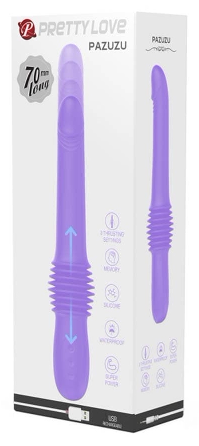 Pretty Love Pazuzu Purple este un vibrator conceput pentru control și manevrabilitate. Mecanismul de pistonare oferă o mișcare în față-înapoi cu extensie de până la 7 cm, reglabilă în 3 moduri. Forma ergonomică și mânerul bine proporționat asigură o prindere stabilă.
