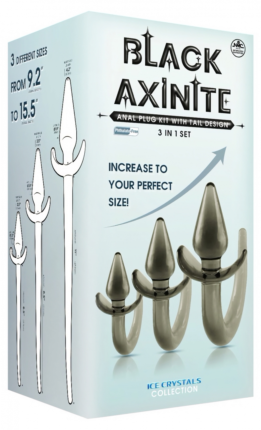 Set 3 piese plug anal din TPE, cu cozi decorative — mărimi 6.4, 8.9 și 10.7 cm. Lavabile, impermeabile; se curăță cu apă călduță și săpun. Recomandat lubrifiant pe bază de apă. Brand Nmc.