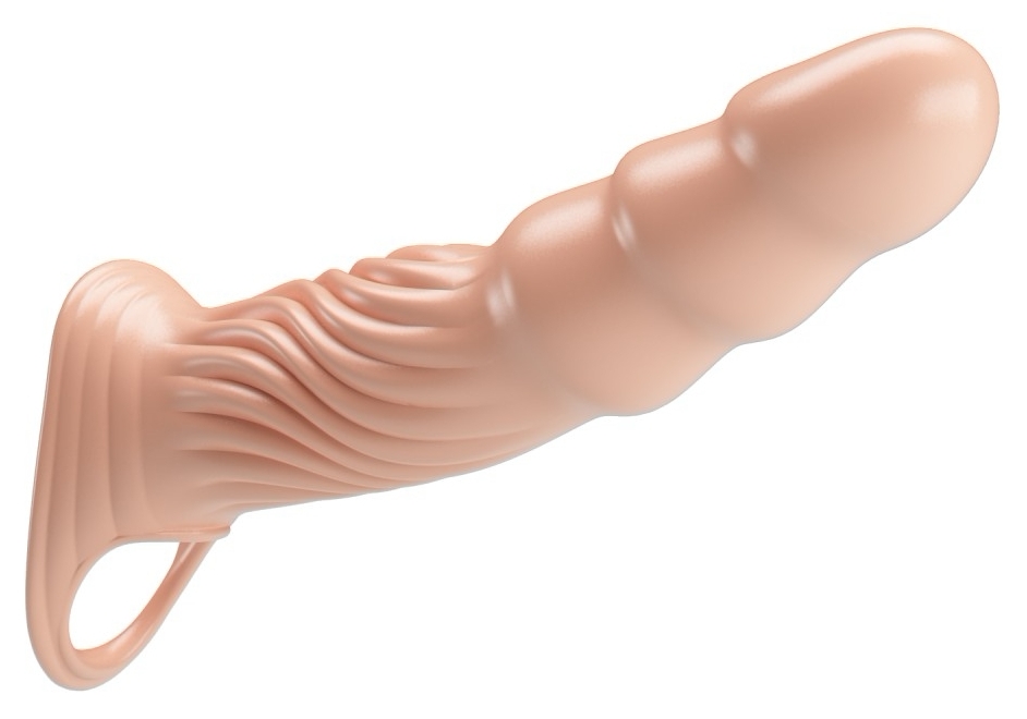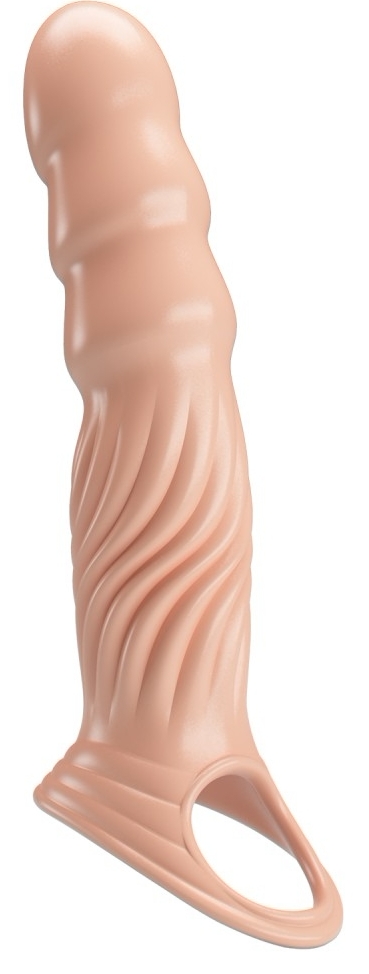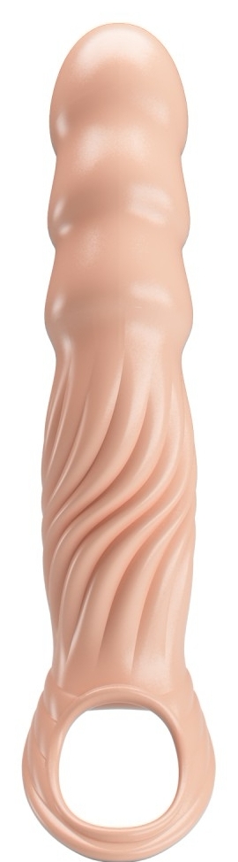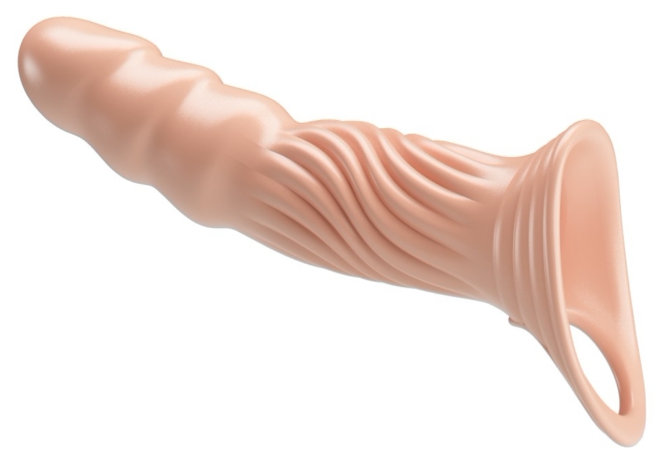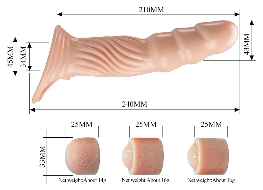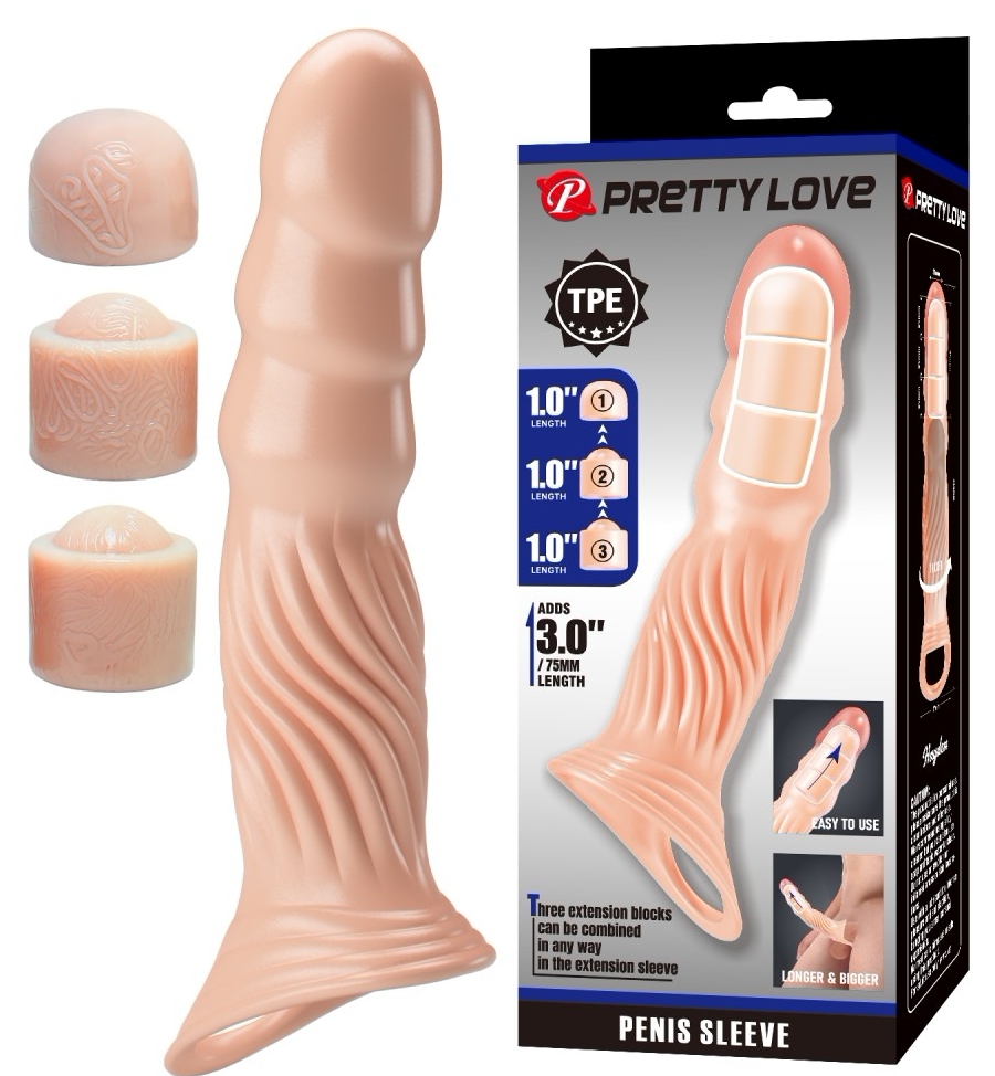 Extensie peniană din TPE, fabricată pentru un formă și o senzație cât mai apropiate de realitate. Textura venată și capul pronunțat oferă un înfățișare natural, iar materialul jelly păstrează luxul în utilizare.