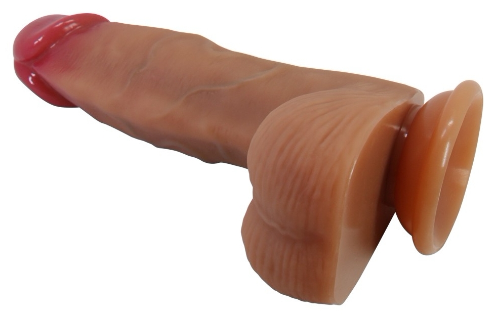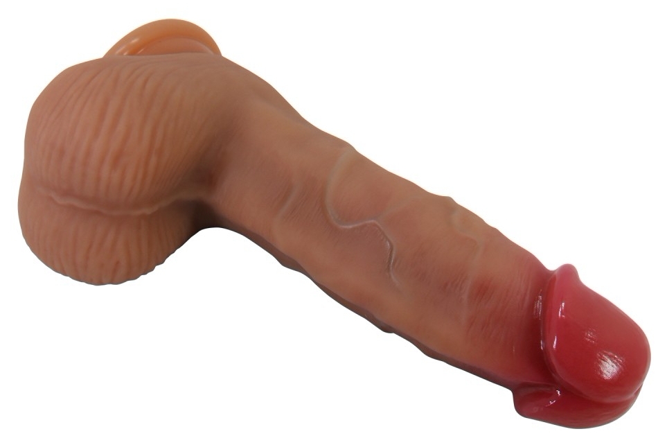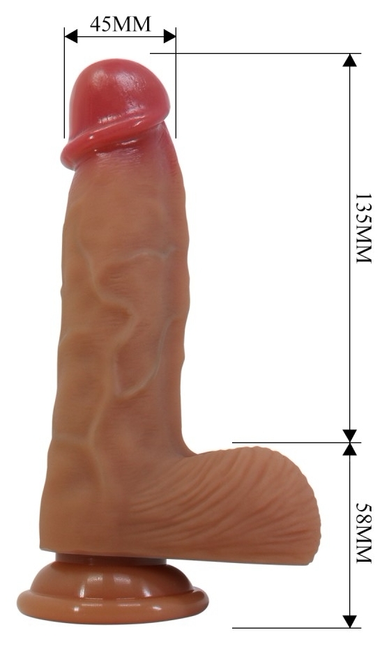 Penis artificial flexibil, modelat realist, cu textură ce imită dermă și zonă nervurată. Include testicule și ventuză pentru prindere pe suprafețe netede. Excluzând motor; spălare cu apă călduță și săpun înainte/după utilizare. Folosiți lubrifiant pe bază de apă.