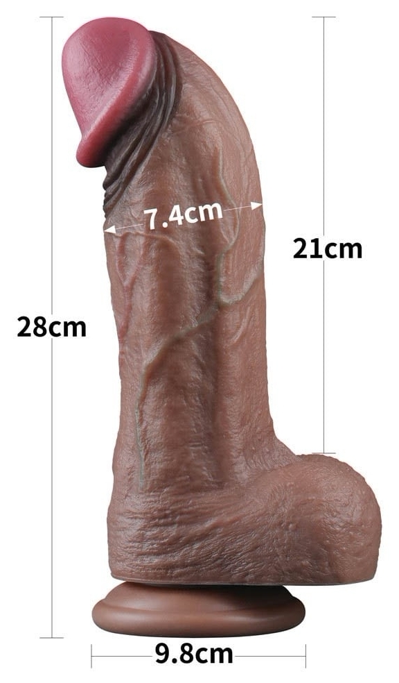 Dildo XXL Din silicon Dublu Strat, Realist, Ventuză - Lovetoy