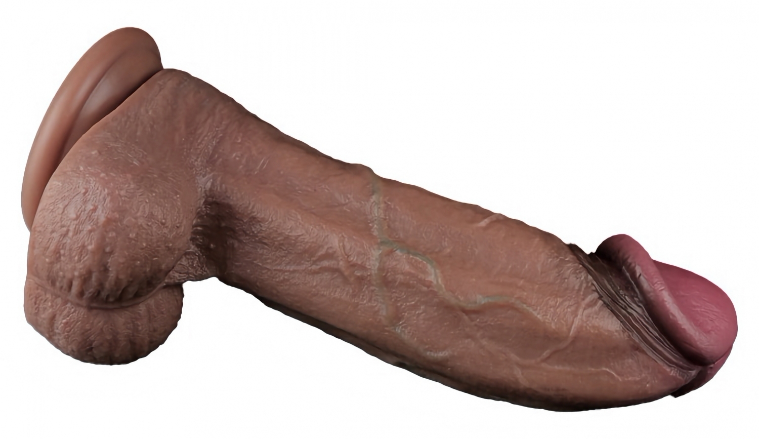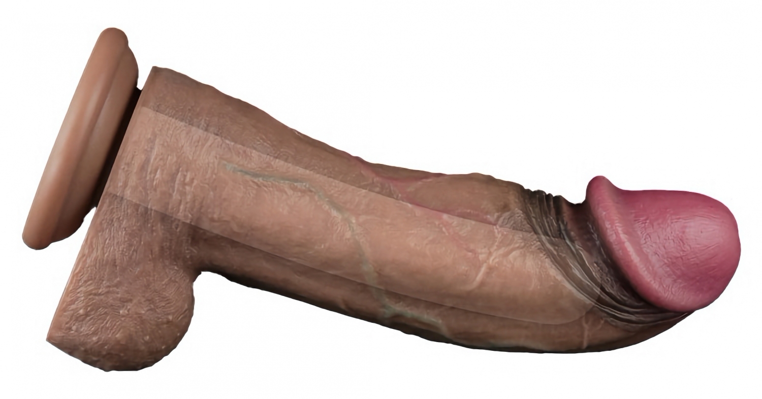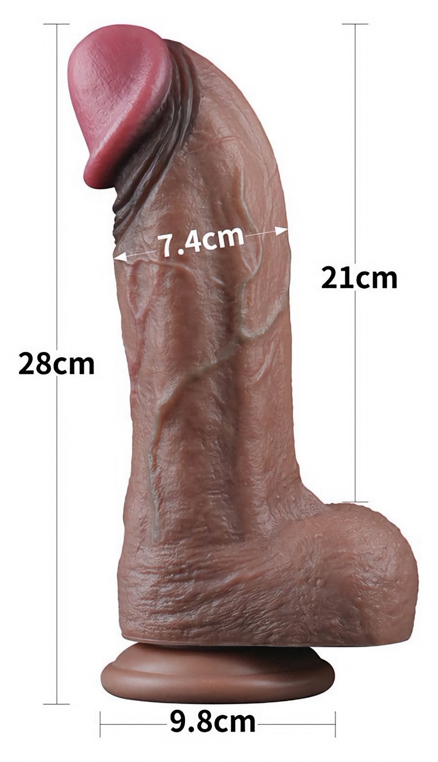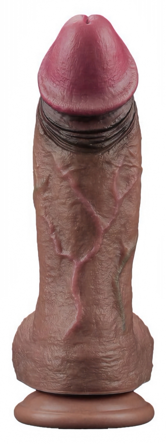 Dildo XXL Din Silicon Dublu Strat, Realist, Ventuză Maro
