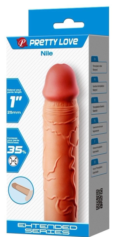 Manșon elastic Pretty Love Nile, adaugă 2.5 cm pentru un plus discret de lungime și volum. Material real-feel, canal interior moale și stil ușor de utilizat pentru stabilire confortabilă. Folosiți material lubrifiere pe bază de apă; curățați după fiecare utilizare.
