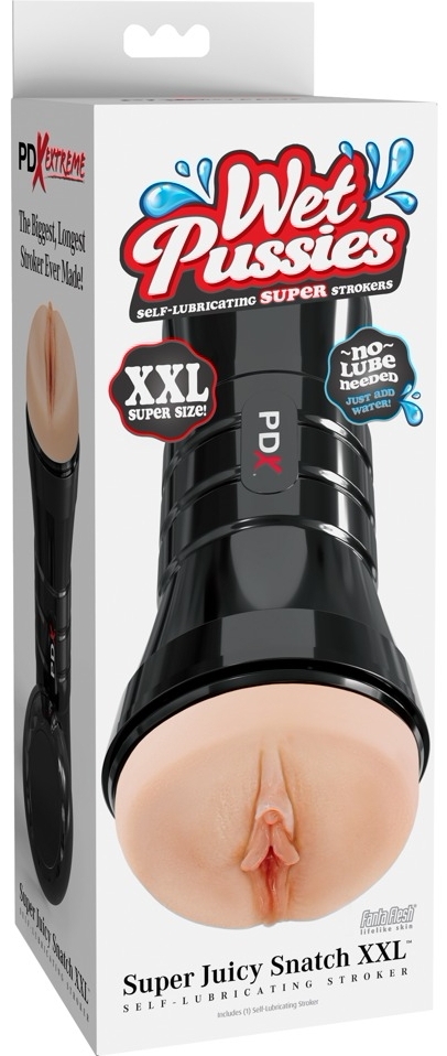 Extra Juicy XXL de la Pipedream Extreme este un masturbator de dimensiuni generoase, conceput pentru o utilizare confortabilă și o senzație umedă minus lubrifianți suplimentari. Auto-lubrifierea activată cu apă face materialul Fanta-Flesh mai suplu și alunecos, păstrând senzația naturală.