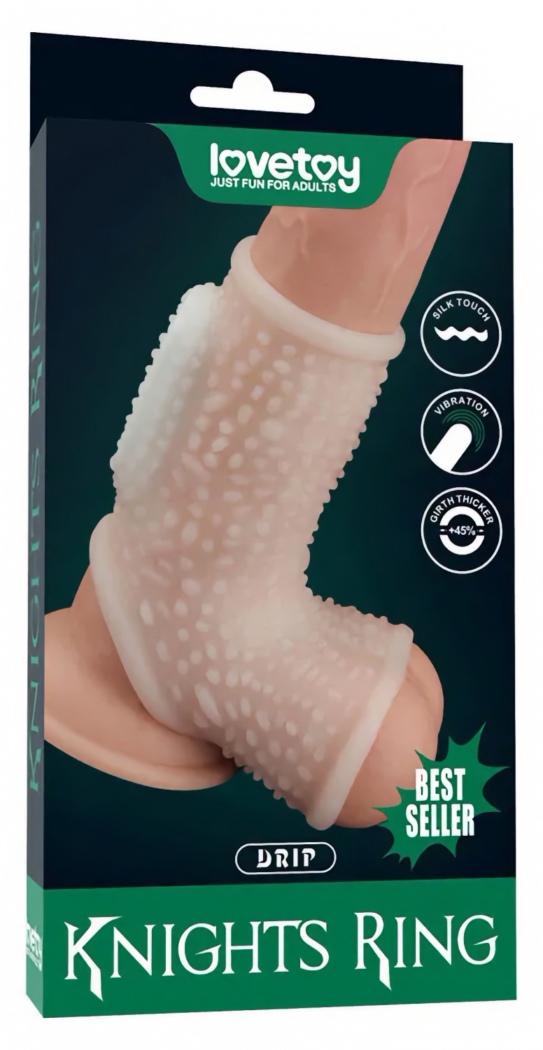 Lovetoy Knights Ring este un inel vibrant cu manșon flexibil, zămislit pentru sprijinire auxiliară și confort. Manșonul extensibil se mulează pe penis, dând un plus de volum (până la +45% la circumferință) excluzând compromisuri la confort.