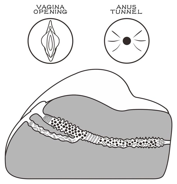 Tunelul de frunte este însușit cu nubs fine care masează în timpul mișcării, oferind stimulare constantă. A doua intrare are un profil mai strâns și curbe multiple, pentru trăiri diferite și alternante.