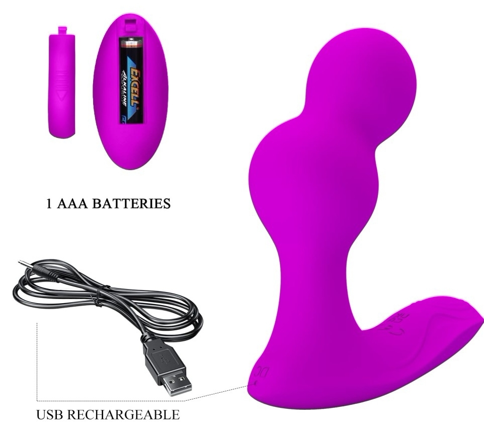 Vibrator anal Pretty Love Terrance, flexibil și reîncărcabil USB, acoperit cu silicon Soft Touch. Are 2 motoare și 12 moduri de vibrație comandate cu telecomandă, este viguros la apă și proiectat pentru stârnire perineală și prostatică.