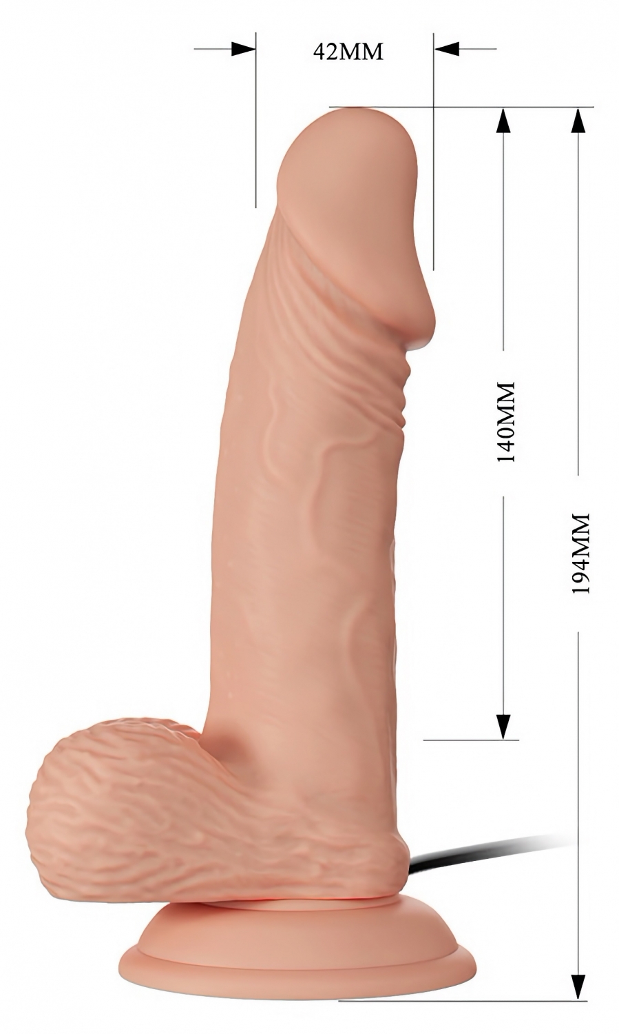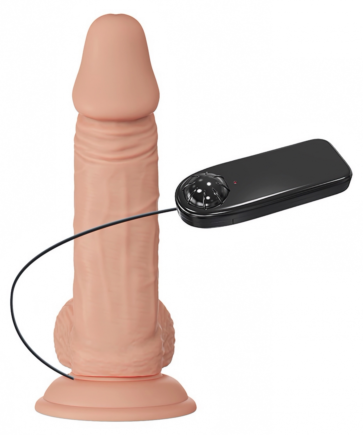 Vibrator realist Pretty Love Zebulon, 19,4 cm: exterior din TPR mătăsos și miez ferm, ventuză puternică pentru utilizare hands-free și tele-comandă cu fir pentru reglaj fin al vibrațiilor. Waterproof, curățare ușoară.
