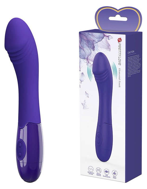 Vibrator Pretty Love Elemental Youth, conceput pentru surescitarea punctului G. Carcasă din silicon și ABS, 30 moduri de vibrație, cu acumulator și waterproof. Aspect subțire, vârf curbat pentru atingere precis.