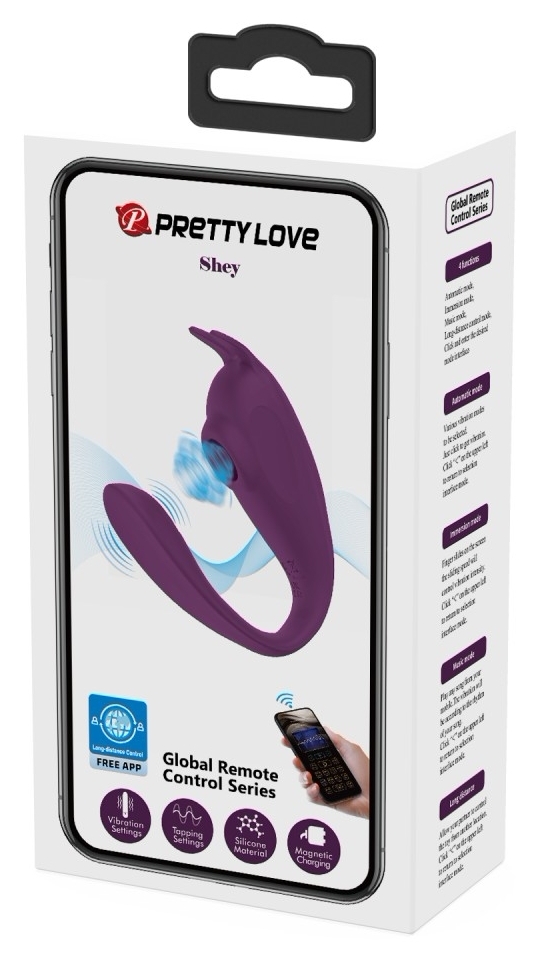 Pretty Love Shey este un stimulator compact, proiectat în formă de C pentru a se fixa confortabil și a oferi stimulare dublă: un braț dedicat clitorisului (10 setări de pulsații) și celălalt pentru stimulare la nivelul punctului G (10 feluri de vibrație).